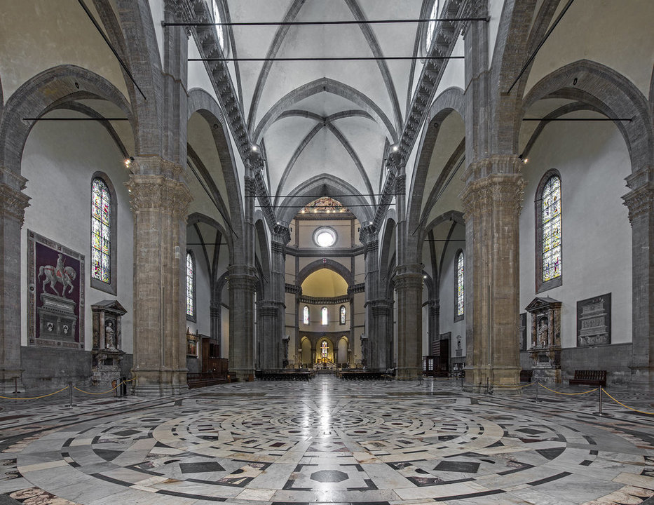 Arnolfo’s design was substantially different from the church’s current structure, as we can see from the outside. If we look at the northern and southern sides of the building, we will note that the first four windows on each side are lower, narrower and closer together than those to the east of them, which are part of an extension built by Francesco Talenti who was master of the works in the mid-14th century.
